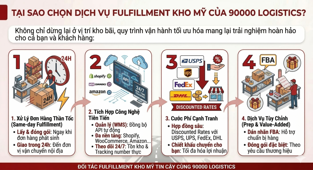 Tại Sao Chọn Dịch Vụ Fulfillment Kho Mỹ Của 90000 Logistics?