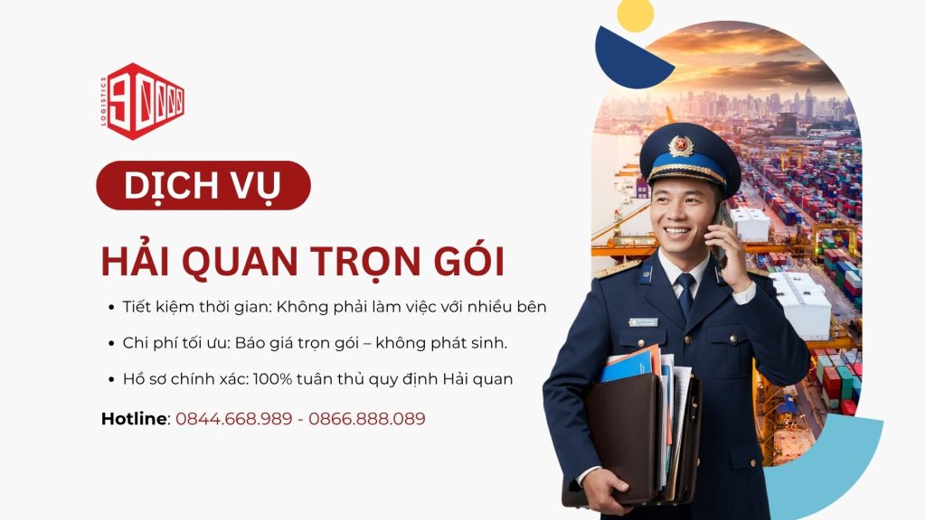 Dịch vụ hải quan trọn gói của 90000 Logistics là giải pháp toàn diện cho mọi thủ tục xuất nhập khẩu. Chúng tôi sẽ thay mặt khách hàng xử lý mọi công đoạn, từ chuẩn bị hồ sơ, khai báo hải quan, đến thông quan hàng hóa, bao gồm cả việc thanh toán các chi phí phát sinh theo thỏa thuận trước